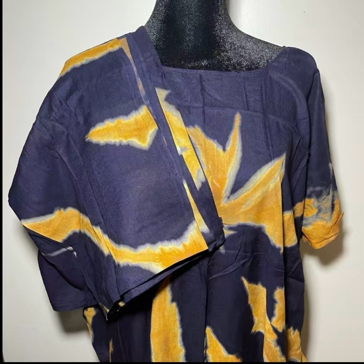 This Baati dress is for everyday wear. You can wear your Baati dress while you sip your tea/ coffee, just chilling at home or out and about running errands. Made from soft 100% Rayon material. It is absolutely Comfortable and colorful. A Baati ls a cotton house dress that is loose fit and has short sleeves. The garment is noted for its versatility; it can be used as swimwear or as a sling to carry an infant. Scarf included **